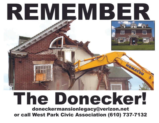 In the wake of the callous demolition of The Donecker Mansion by St. Luke's University Health Network, a group has been formed to support historic preservation in Allentown. While the focus of the group is currently the West Park neighborhood, we look forward to working with other neighborhood groups throughout the city to encourage and support historic preservation efforts. If you are interested in joining the cause, please contact us at doneckermansionlegacy@verizon.net or call West Park Civic Association, 610-737-7132.